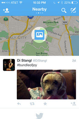 为了充分利用用户的地理位置信息,Twitter正在移动应用中测试一项名为“附近”(Nearby)的时光轴信息流,专门用于展示周围的其他用户发送的Twitter消息。
